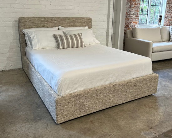 Timeless upholstered bed. Easy to assemble. Made to order in your choice of fabric. Headboard detail can be tailored to your brief. MATTRESS NOT INCLUDED.