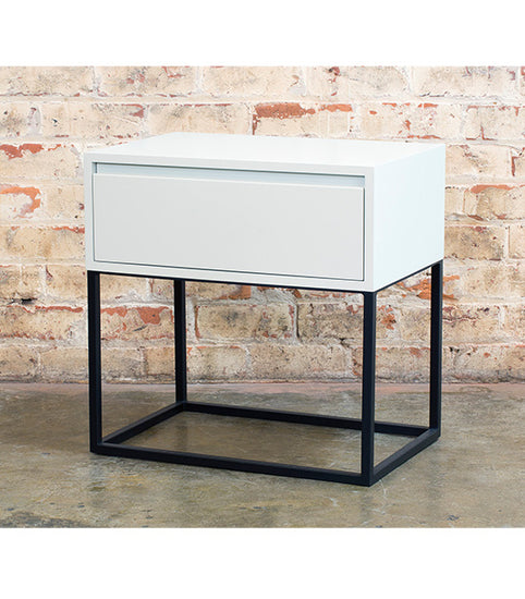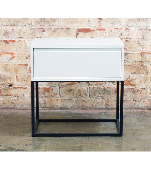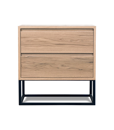 Single or two drawer cabinet with box steel base in matt black. Push-release drawer with sharktooth handle.