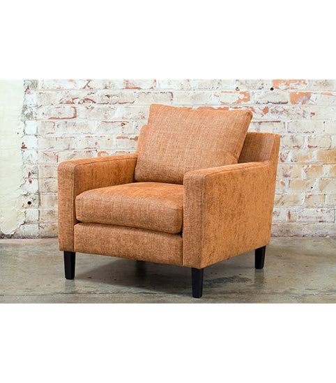 Feather, fibre & foam back cushion. Luxura foam seat cushion. Stained wooden legs.
