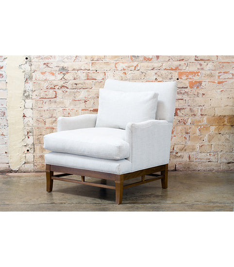Elegant armchair with luxurious feather cushioning. Curved back & arm detail. Feather & down cushions. Finely crafted Oak base.