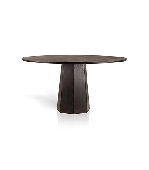 Timeless pedestal table design with solid American Ash top with beveled edges. Sits on slatted and tapered pedestal base.