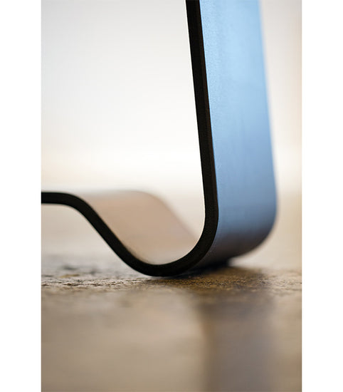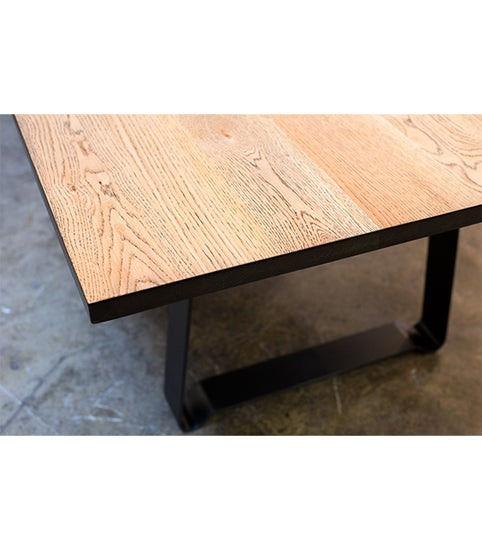 Contemporary table design with solid American Ash top with matt black flat steel base.