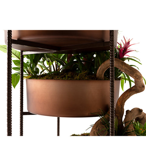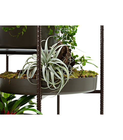 Vertical garden with outdoor powder-varnished steel structure and aluminium vases.